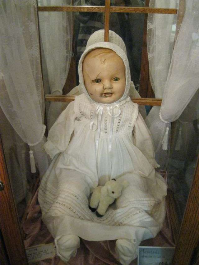Museum staff and visitors have been subjected to many a strange happening. Things go missing and turn up in weird places, phantom footsteps are heard. If you try to videotape or photograph Mandy, she might misbehave by making your camera turn off or throwing things from nearby shelves. A child even fainted in front of Mandy’s case once—because when you tell a little kid “hey how about you lock eyes with this creepy haunted doll,” that’s an expected result.