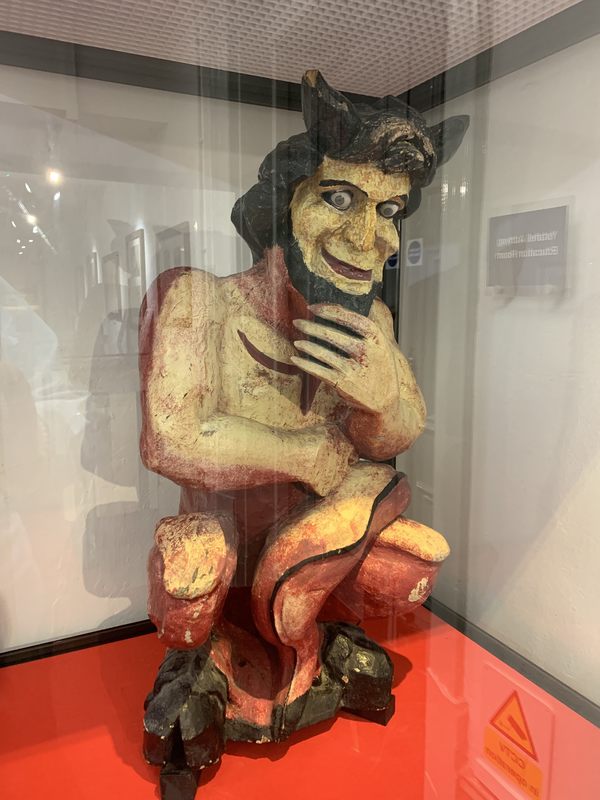 Meet Old Nick, a woodcarving dating back to the 1890s. An ugly, ugly woodcarving of a sneering devil.