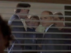 Alas, the next we see of Shannon, her body is being removed from the classroom. Our Intrepid Agents are on the scene, interviewing Mrs. Paddock. Mrs. Paddock puts on a pretty good performance, but not good enough.