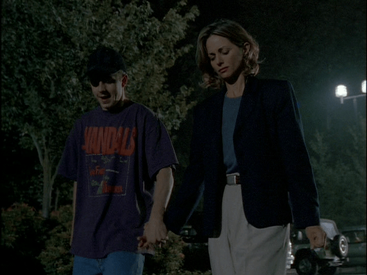 Later, we see that Mr. Kiveat has lived but is hospitalized. Mulder bumps into Mrs. Kiveat and asks her some questions about Darin. Mrs. Kiveat isnโt much help, as she has much more important things to do like stay by her sick husbandโs bedside. Fair enough!