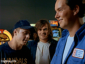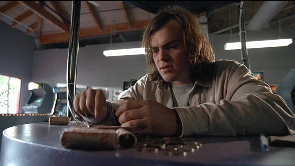 With Pizza Delivery Douche taken out, Darin returns to his game. Jack Black gives an impeccable Jack Black eyebrow arch. And the boys watch the arcade console come to life.