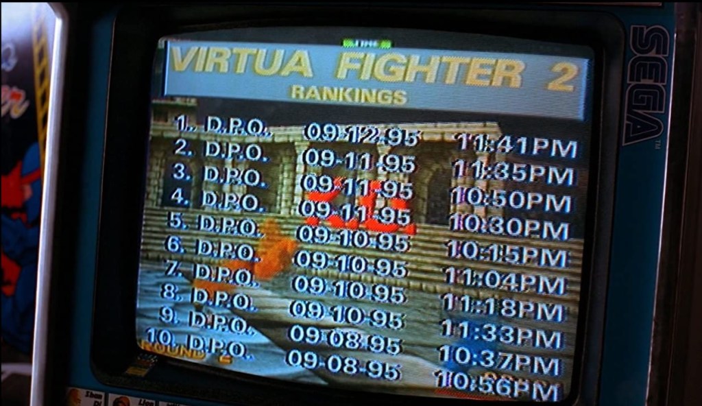 Mulder calls Scullyโs attention to the scoreboard of the machine that Zero said Pizza Delivery Douche was playing last night. The entire scoreboard is taken up by the initials D.P.O.. Hey! Itโs the name of the episode! Drink!