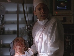 Shortly after the incident, Dr. Ilaqua is being interviewed by Scully. He seems pretty stiff and cold for someone who has just lost control of himself and murdered a patient. He too describes an out-of-body experience.