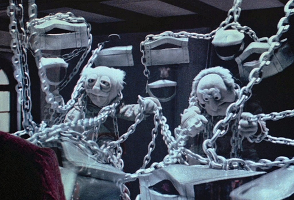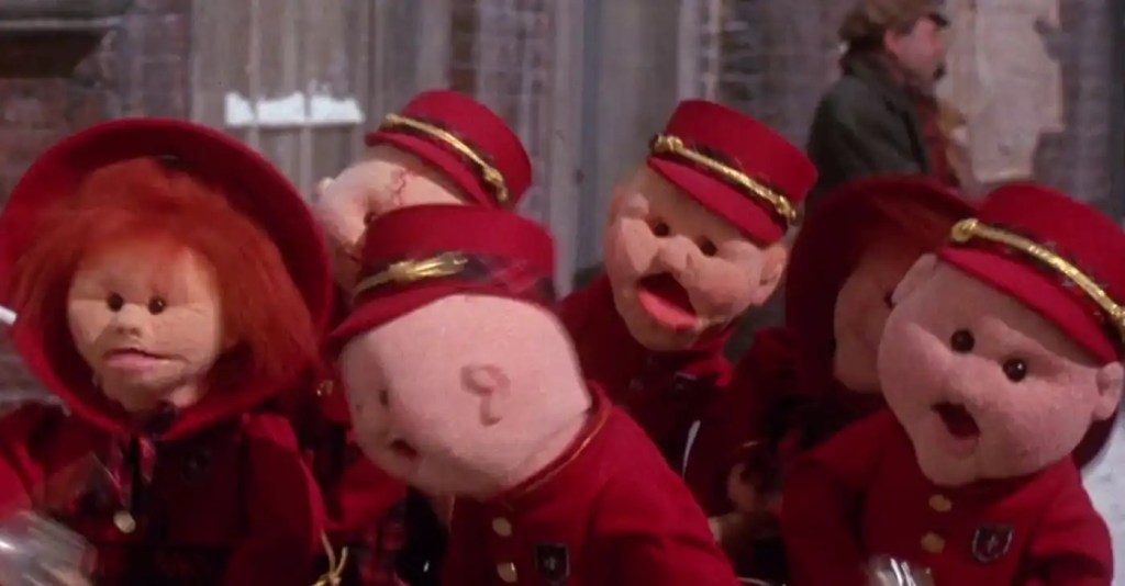 While viewing Scrooge’s neglected body in his dark empty house, there are the distinct noises of a cat and rats trying to claw or gnaw their way into the room to devour the body. So remember: make friends in this life, or no one is going to keep away animals trying to eat your corpse. A sound lesson for children everywhere.