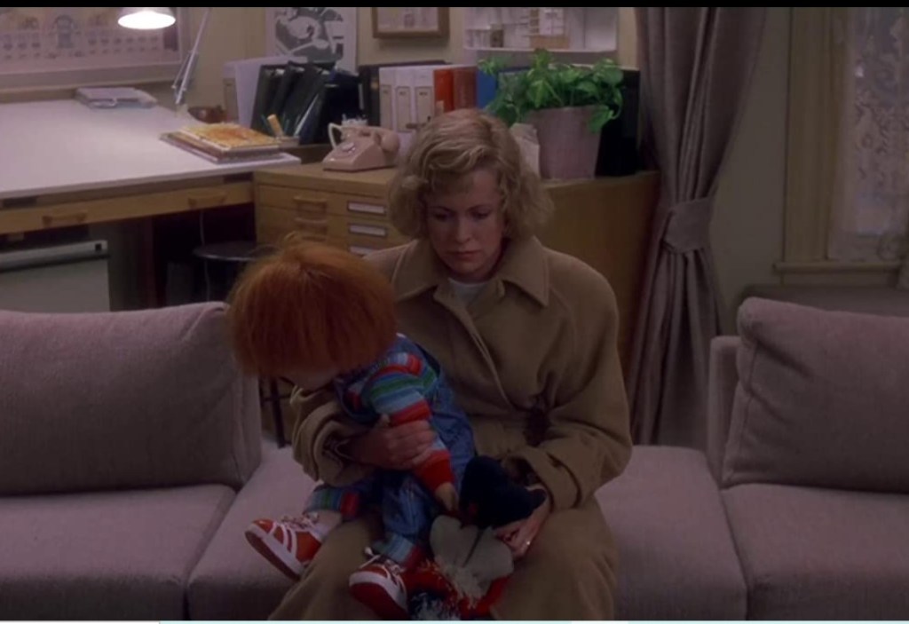 (As established in our Urban Legend and The Exorcist 3 posts, I love weird character actor Brad Dourif. I promise to temper my love with objectivity in this review. Objectively: Brad Dourif is great as evil doll Chucky. The end.)