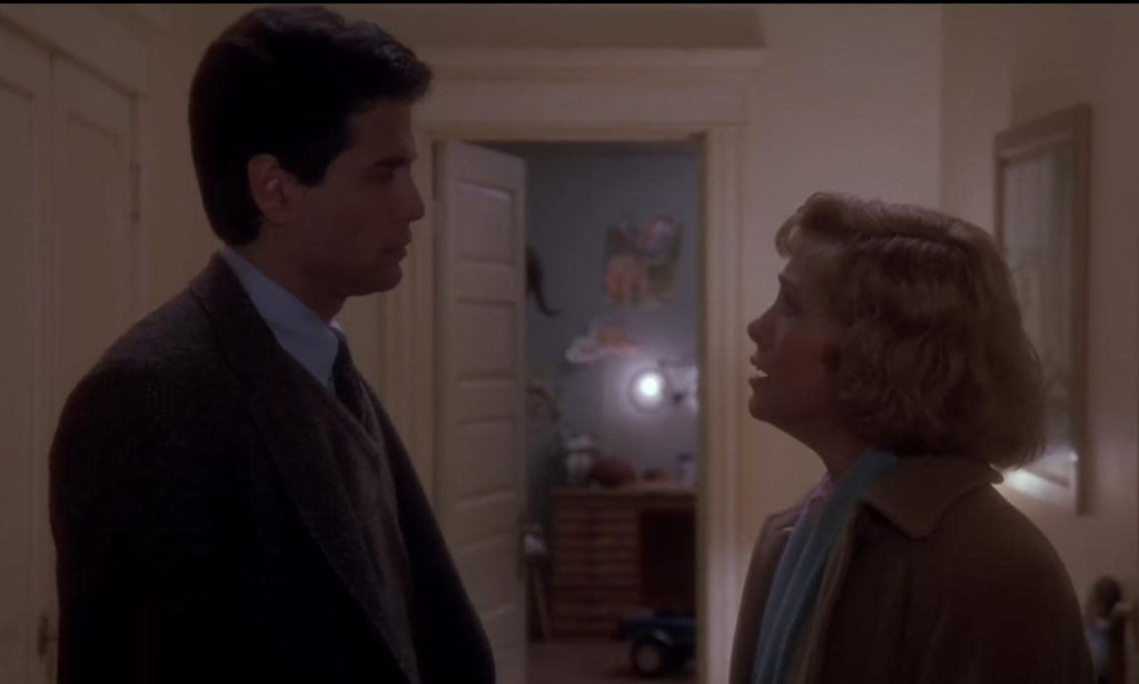 But this is the moment when the switch flips. This is when this pathetic, sorry-looking scumbag in a bad suit transforms into something actually scary. Brad Dourif lets loose his trademark rage and begins yelling. …hmm, ‘yelling’ is not a strong enough word. It’s a bellowing roar where the only proper response is “I must leave this area immediately.”